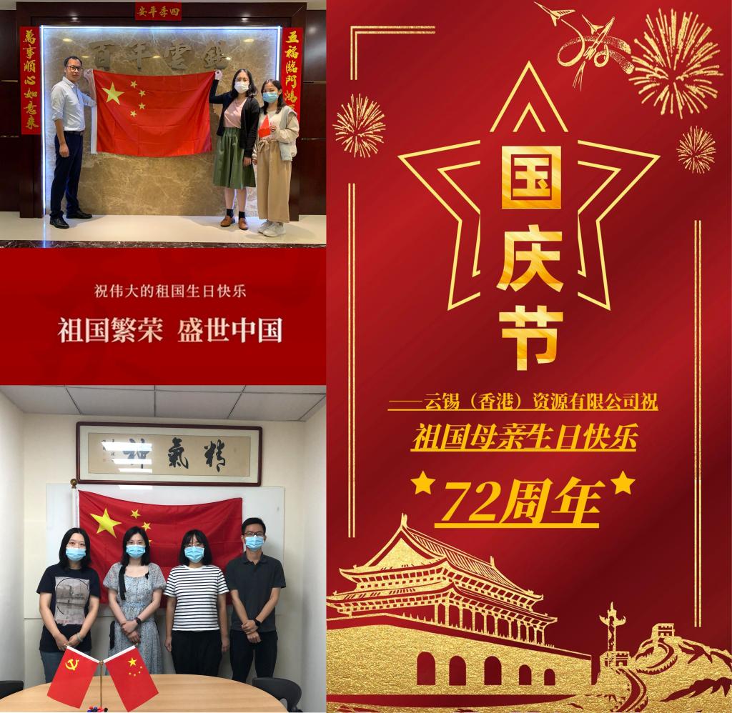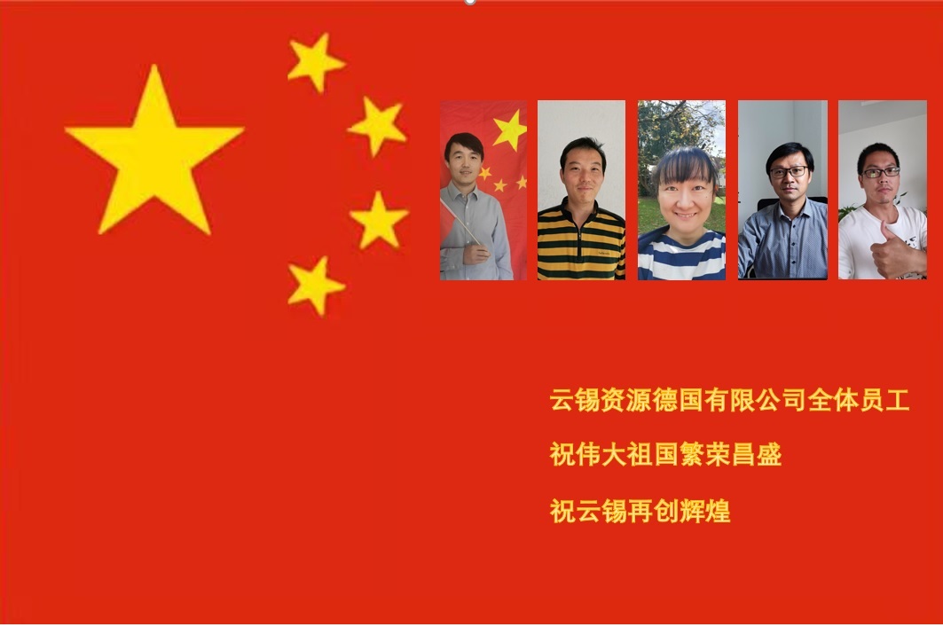研究院公司黨委:盛世華誕,舉國同慶。祝福祖國國泰民安,繁榮昌盛!祝福云錫生機勃勃,再鑄輝煌!云錫科技,領跑錫業;科技之光,點燃夢想!