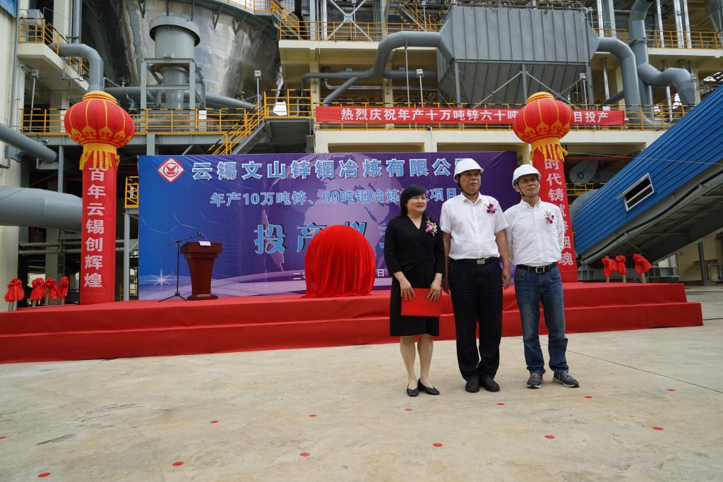 控股公司、錫業股份、中國銅業有限公司、中國恩菲工程技術有限公司、中國瑞林工程技術股份有限公司、華聯鋅銦公司、云錫文山鋅銦冶煉有限公司等19家單位相關領導共計100余人出席項目投產儀式。