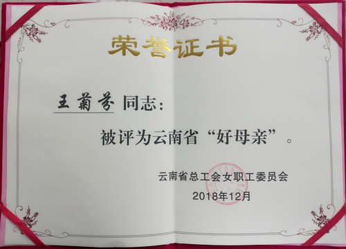 近日,云南省總工會表彰了全省先進女職工集體和個人,老廠分公司選礦車間女職工王菊芬榮獲2018年度云南省“好母親”榮譽稱號。