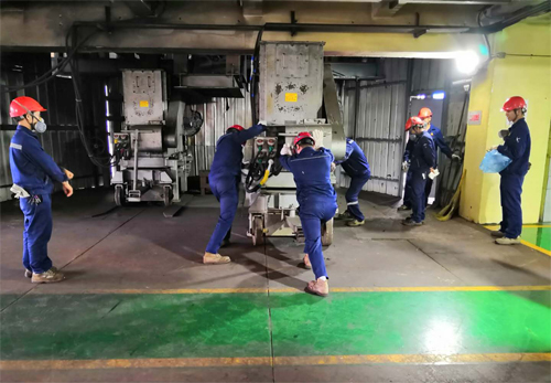 而焙燒工序與行車班相反,全是一群男子漢,少了女同胞的認真細致,但他們粗中有細的,更換拋料機便成了技能比賽關(guān)鍵設備。因為拋料機是沸騰焙燒工序更換比較頻繁的一個設備,需要力量也需要技術(shù),如何快速、準確地更換拋料機,確保沸騰爐連續(xù)進料。更換拋料機技能比武是三人一組在模擬正在使用的拋料機故障下進行,需要盡快更換一臺備用的,先把正在使用的從沸騰爐拋料口拉出來,再把備用的推進去,接到拋料口以及爐前倉的下料口,確保物料可以準確拋入爐內(nèi)。他們沉著應戰(zhàn),展現(xiàn)出熟練的操作技能、拼搏的進取精神、通力協(xié)作的團隊意識,充分展示了一線操作人員良好的職業(yè)素養(yǎng)、精神風貌和業(yè)務素質(zhì)。最后,李紹林、張后奎、孟順林以2分55秒的最快速度獲勝。