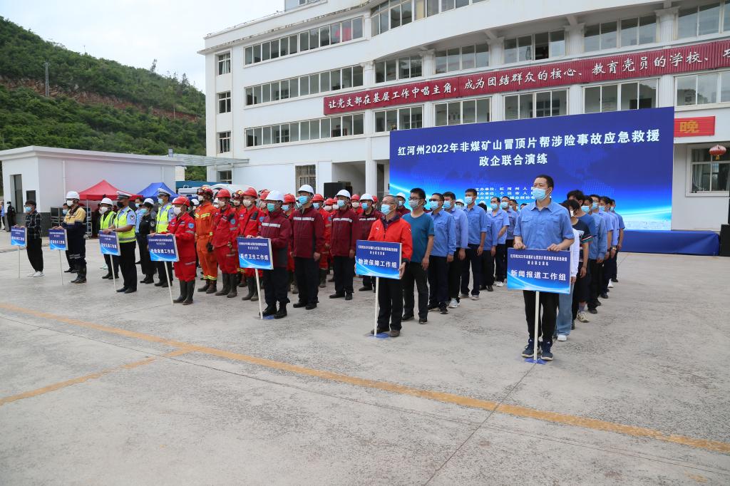 6月23日,由紅河州人民政府主辦、個(gè)舊市人民政府承辦、云南錫業(yè)股份有限公司協(xié)辦的紅河州2022年非煤礦山冒頂片幫涉險(xiǎn)事故應(yīng)急救援政企聯(lián)合演練在大屯錫礦舉行。認(rèn)真學(xué)習(xí)貫徹落實(shí)習(xí)近平總書記關(guān)于安全生產(chǎn)重要論述,推動(dòng)各級應(yīng)急管理責(zé)任落實(shí),壓實(shí)安全生產(chǎn)責(zé)任,切實(shí)提高紅河州非煤礦山事故應(yīng)急救援能力。紅河州人民政府副秘書長楊克平,紅河州應(yīng)急管理局局長張錳,錫業(yè)股份黨委副書記、董事長、總經(jīng)理劉路坷,錫業(yè)股份黨委委員、副總經(jīng)理王建偉,錫業(yè)股份黨委委員、大屯錫礦黨委書記、經(jīng)理王壽安等出席演練活動(dòng)。