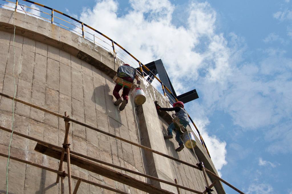 “整個濃縮站說起來只是簡單的幾個主要構筑物,但要一一建設起來難度可不一般。單說濃縮塔的建設,塔高17米、寬18米、上為園柱形、下為園錐體的塔池,池體池壁厚30厘米,池壁最大最小直徑差不能超過20毫米,池壁鉛垂度正負不超過5毫米,也就是說內池池壁近呼垂直,底部錐體縱、橫中心線誤差不能超過5毫米,池體標高正負不超過10毫米,為的是今后架設濃縮機傳動支承架時的水平,溢流堰平面度不超過正負3毫米,可以想象我們在施工時的難度有多大了。”
